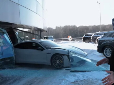 Mikhail Litvin, a well-known Russian YouTuber, ended up crashing through the windows of a dealership with his new Porsche Taycan Turbo S, making it perhaps...
